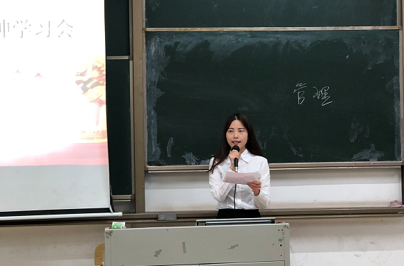 电信学院团总支副书记翁宇芳提到,要学习贯彻习近平总书记重要讲话精神,珍惜青春,抓住黄金时期,担负起时代使命,努力成为德智体美全面发展的社会主义建设者和接班人,为建设伟大的中国梦贡献自己的青春力量。